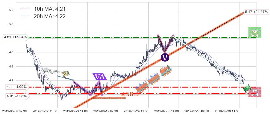 ♘ 支撑价格位4.01,可信任强度71.70%,距离最后交易2019-07-31 15:00形成的收盘价格4.15相差 -3.28%