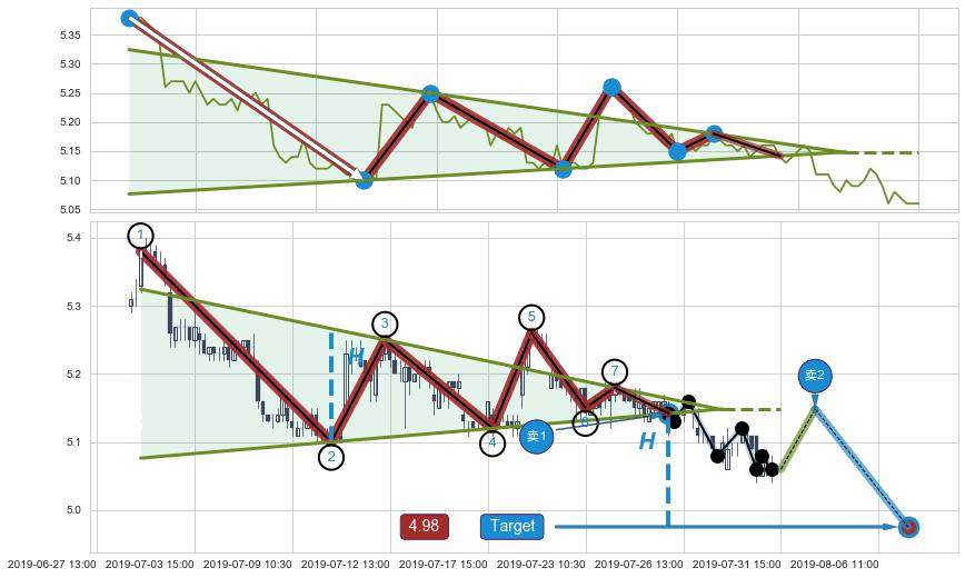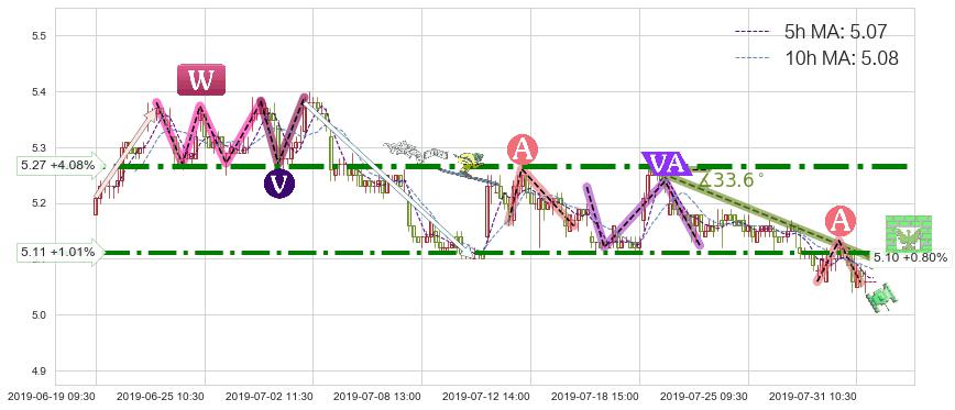 ➢ 预测:2019-08-05 12:00,【继续下探】稳定目前下跌趋势的前提下,预测价格:5.01