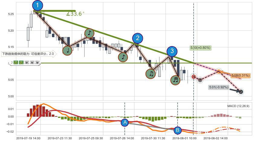 ➣ 预测:2019-08-02 11:00,【小幅反弹】稳定目前下跌趋势的前提下,预测价格:5.08