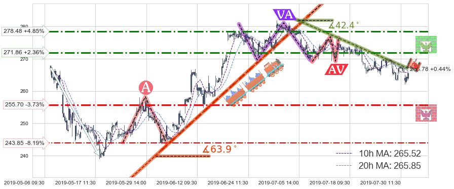 ♘ 阻力价格位271.86,可信任强度67.38%,距离最后交易2019-07-31 15:00形成的收盘价格265.60相差 +2.36%