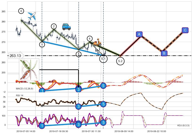 ➢ 5.2: 预测第5浪最终位置(08-06:12, 263.13)