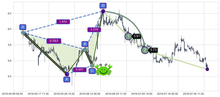 ➣ 已完成【螃蟹】形态起点X: 05-06:09, 终点D: 06-12:15, 共156交易小时