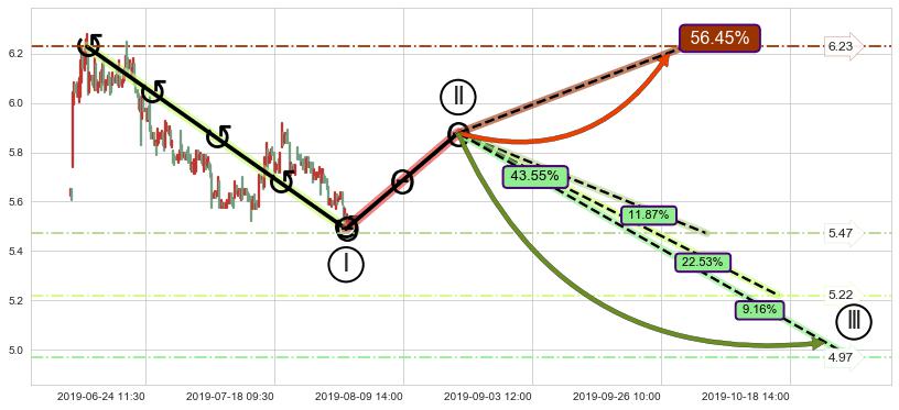 ➣ 循环浪继续向下【平均值】位置(10-17:12, 5.22),匹配聚类样本比例51.72%, 可能性概率22.53%