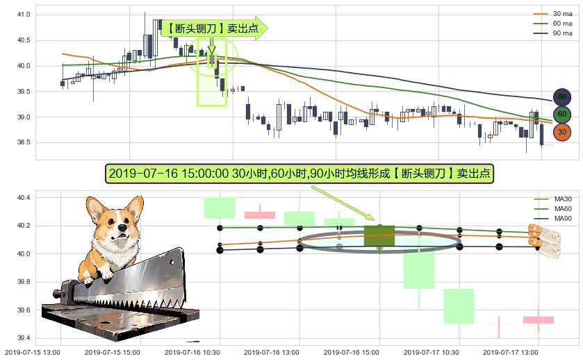 形态多维评估: ⚀ 2019-07-16 15:00:00小时显现 30小时-60小时-90小时均线 【断头铡刀】卖出点 看空信号,后市看跌,卖出