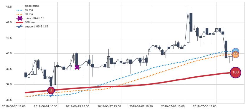 上涨趋势06-20 13:00-07-08 11:30,均线100确认关键支撑1处