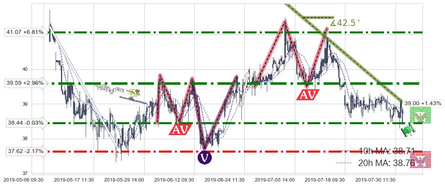 ♘ 阻力价格位39.59,可信任强度88.13%,距离最后交易2019-07-31 15:00形成的收盘价格38.45相差 +2.96%