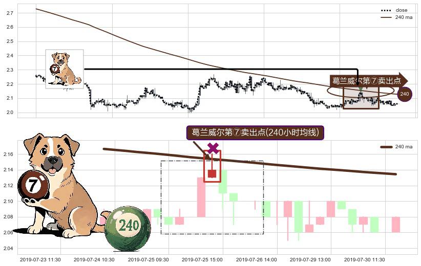 ⚀ 2019-07-25 14:00:00-小时显现 葛兰威尔均线 240小时均线 第⑦卖出点 下降趋势的中继信号,后市看跌,卖出信号