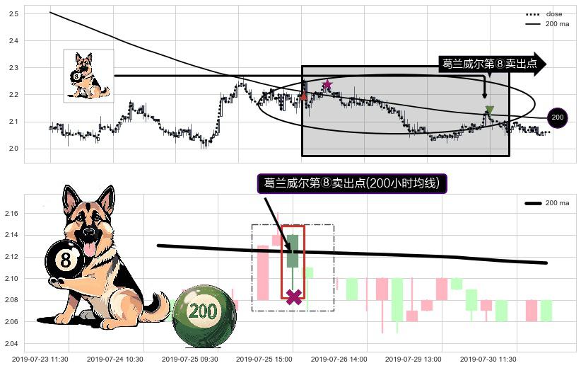 ⚀ 2019-07-25 15:00:00-小时显现 葛兰威尔均线 200小时均线 第⑧卖出点 下降趋势的中继信号,后市看跌,卖出信号