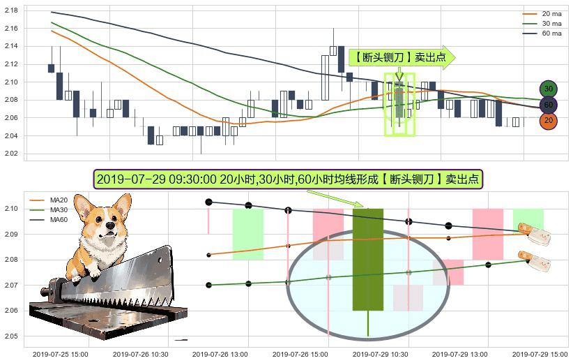 ⚀ 2019-07-29 09:30:00小时显现 20小时-30小时-60小时均线 【断头铡刀】卖出点 看空信号,后市看跌,卖出