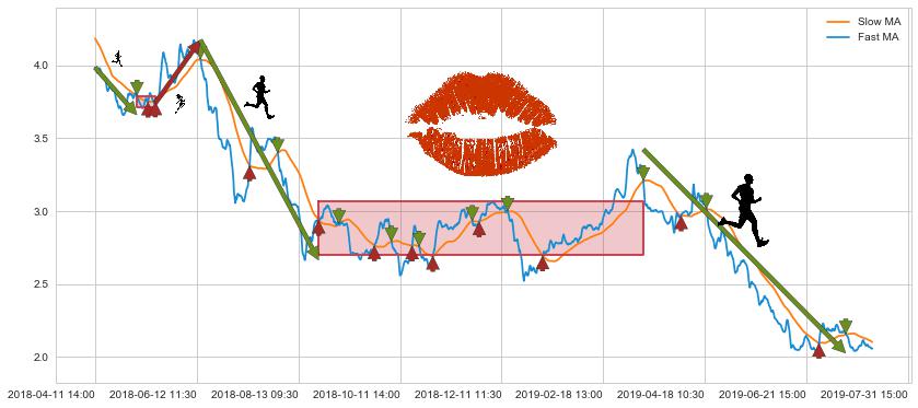 05-07 15:00至05-17 11:30 慢线与快线多次接触,存在上下穿越,有缠绕
