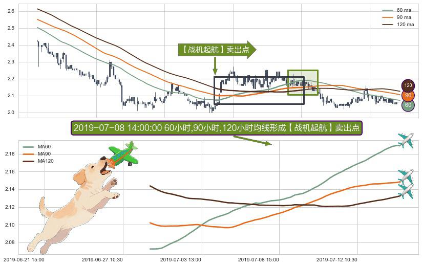 ⚀ 2019-06-28 11:30:00小时-2019-07-16 09:30:00小时显现 60小时-90小时-120小时均线 【战机起航】卖出点 看空信号,后市看跌,卖出