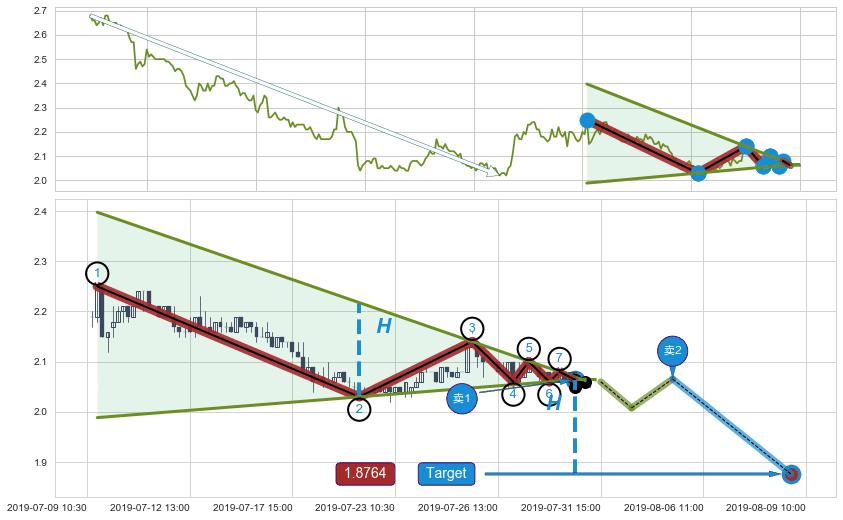 ➣ 【已确认突破】最后价格:2.060与最小【整理】第一目标价格→(08-09:10: 1.8764 )相较: 下跌空间【较大】