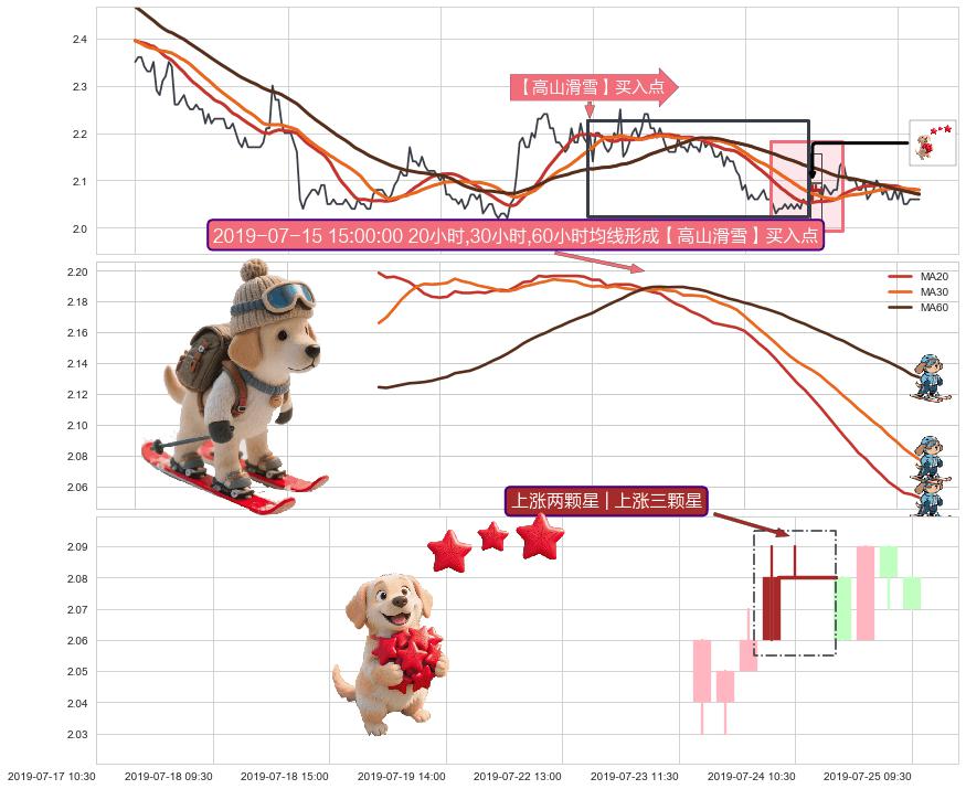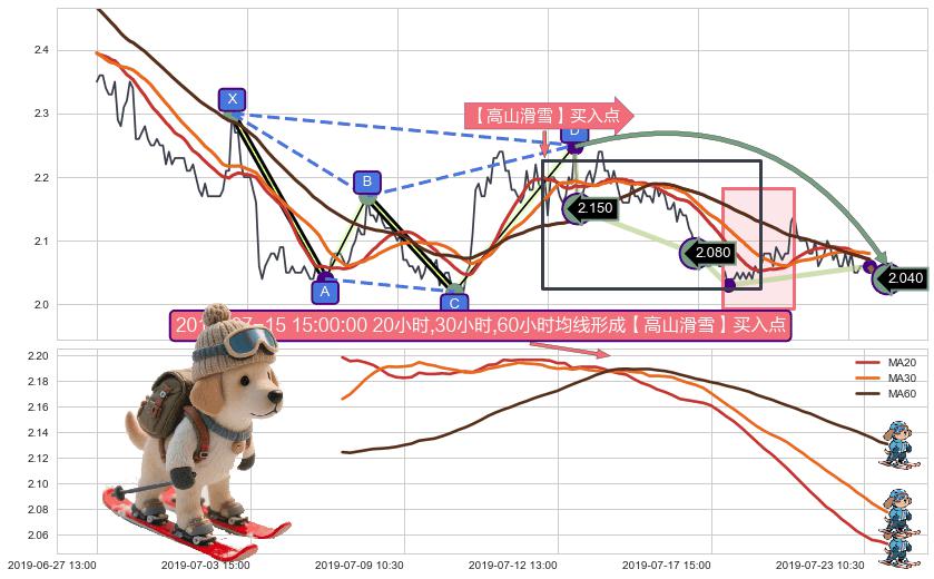 | 4 🅚:多方炮 ➕ 🎢:【高山滑雪】买入点均线组合买入点信号形成后,猜想后续下行结束,持续反弹上涨(均值回复) ☞ 看多信号 ⇥ 【均线】交织【🅚线】⇥ 综合量化分数: 54 | > |
