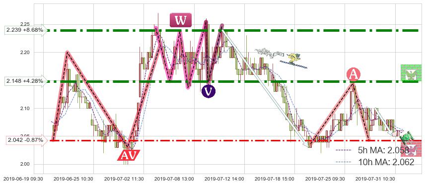 ♘ 阻力价格位2.148,可信任强度93.98%,距离最后交易2019-07-31 15:00形成的收盘价格2.060相差 +4.28%