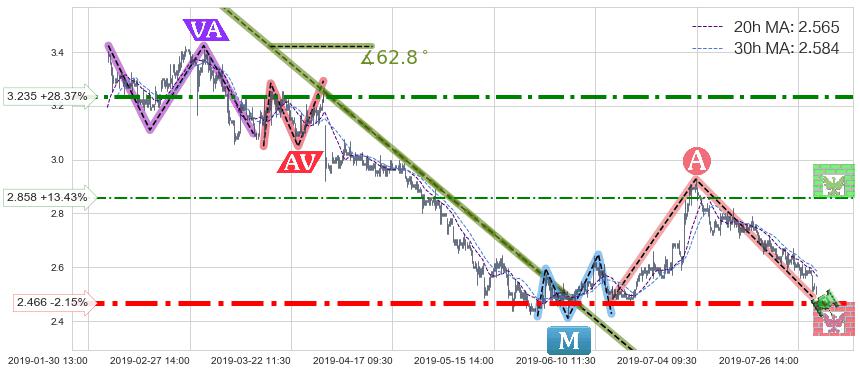 ♘ 支撑价格位2.466,可信任强度98.70%,距离最后交易2019-07-31 15:00形成的收盘价格2.520相差 -2.15%