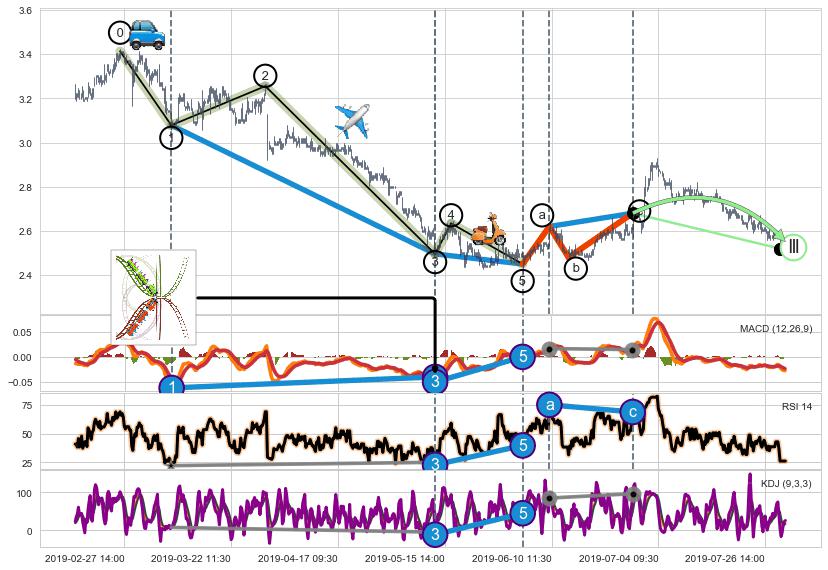 ➣ 1,3,5驱动浪MACD, RSI, KDJ走势都出现【常规背离】反转信号增强