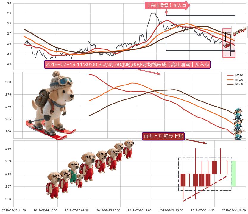 | 3 🅚:【高山滑雪】买入点 ➕ 🌊:波浪理论下跌5浪延续反弹:猜想回调C点击穿突破,猜想持续蓄力反弹abc上涨方向(大周期趋势均值回复后小周期持续趋势跟踪) ☞ 看多信号 ⇥ 【均线】交织【图形】⇥ 综合量化分数: 73 | > |