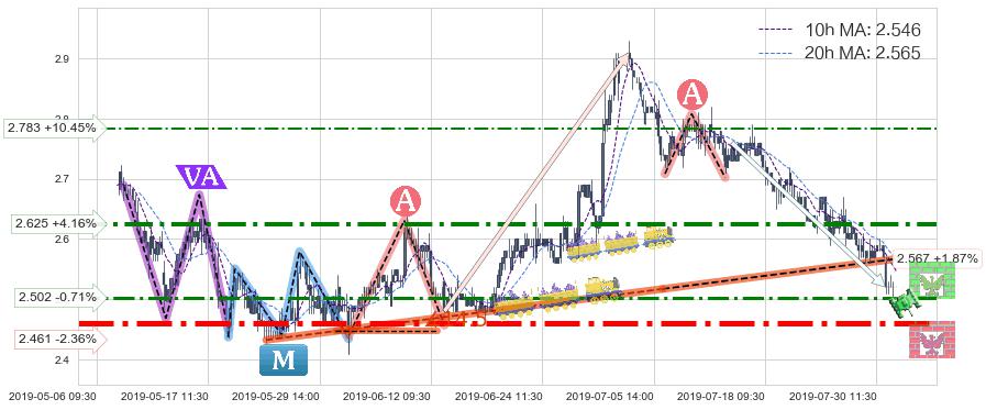 ♘ 支撑价格位2.461,可信任强度96.64%,距离最后交易2019-07-31 15:00形成的收盘价格2.520相差 -2.36%