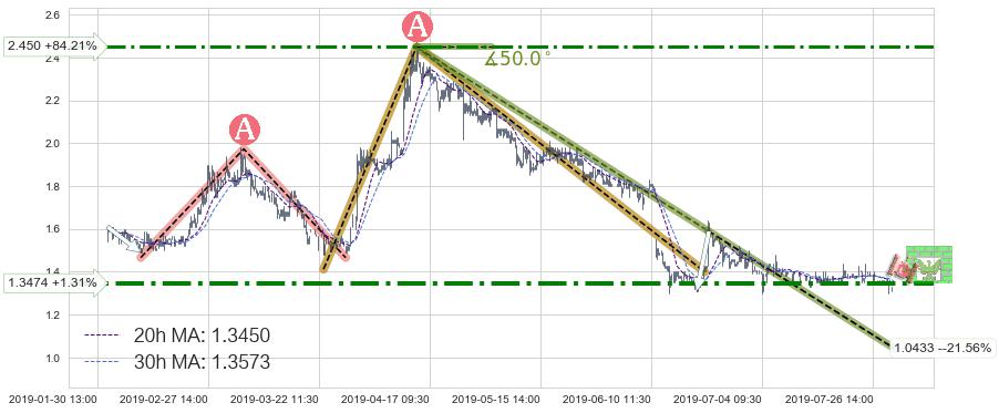 ♘ 阻力价格位2.450,可信任强度58.53%,距离最后交易2019-07-31 15:00形成的收盘价格1.3300相差 +84.21%