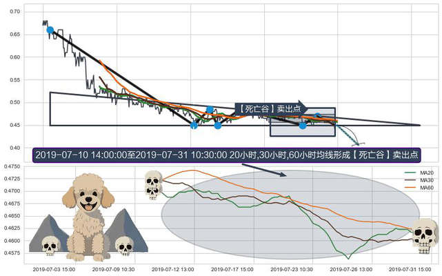 ➣ 🕰 价格走势在2019-07-10 15:00:00至2019-07-31 10:30:00期间形成【死亡谷】卖出点,残存影响值:-27.26