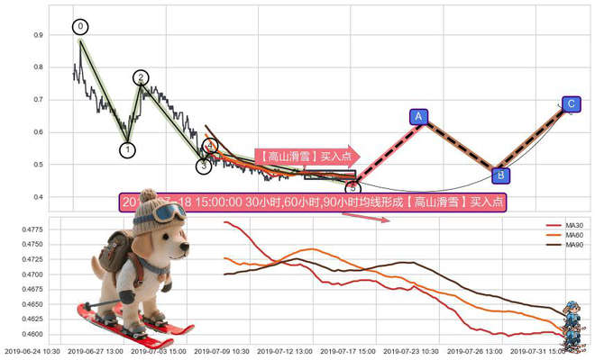 ➣ 【高山滑雪】买入点:高山滑雪是均线组合看多信号,后市看涨,买入信号