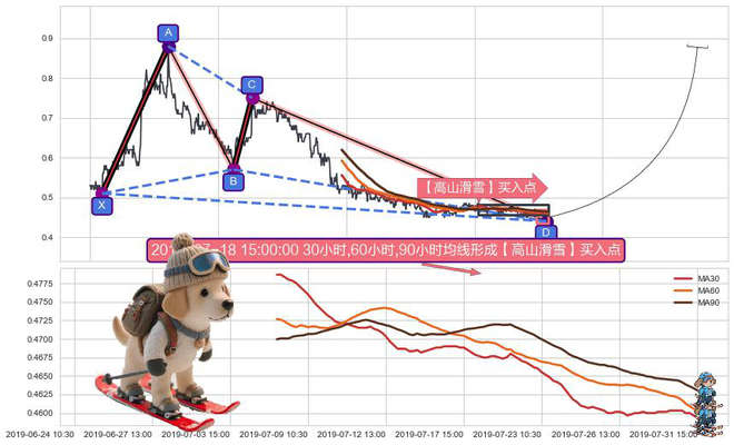 ➣ 【高山滑雪】买入点 + 谐波蝴蝶d拐点上涨支撑信号叠加后【反向回撤率】中等,【看多】信号叠加【存续影响中等】