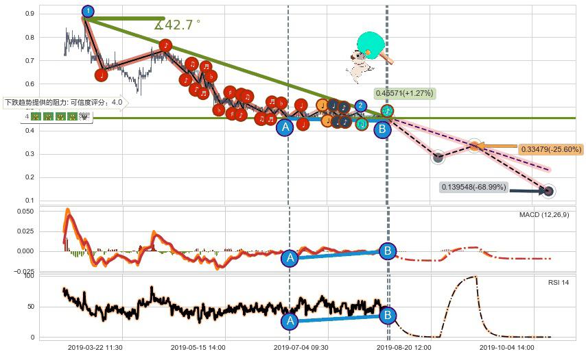 ➣ 预测:2019-09-10 10:00,【试探阻力】稳定目前下跌趋势的前提下,预测价格:0.33479