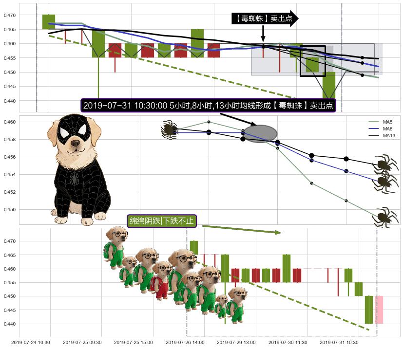 ♘ 在最后的下跌阶段2019-07-02 09:30至2019-07-31 15:00,存在 持续未破位的阻力位 ,阻力价格0.46713,可信任强度81.29%,其距离最后价格0.45000相差 +3.81%