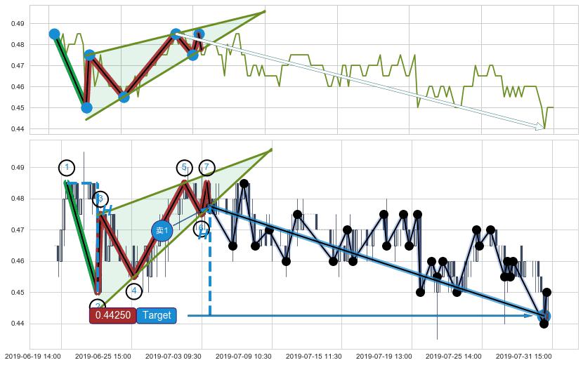 ➣ 【已达成】最小【整理】第一目标价格→(07-31:11: 0.44250 ), 后续继续【整理】下跌动力依然存在,下跌空间适中