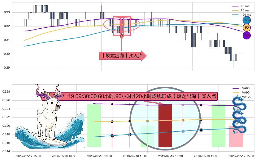 ⚀ 2019-07-19 09:30:00小时显现 60小时-90小时-120小时均线 【蛟龙出海】买入点 看多信号,后市看涨,买入