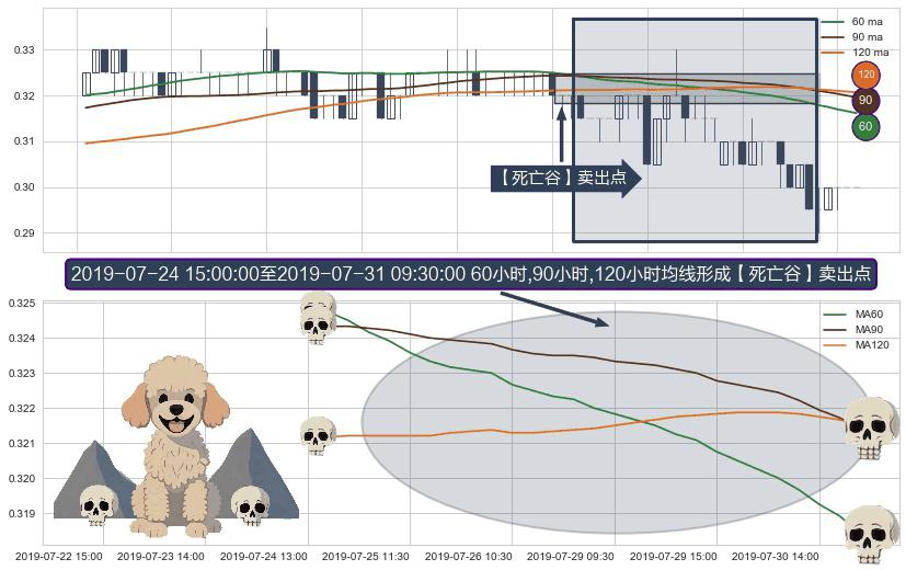 ⚀ 2019-07-25 09:30:00-小时至2019-07-31 09:30:00-小时显现 60小时-90小时-120小时均线 【死亡谷】卖出点 看空信号,后市看跌,卖出