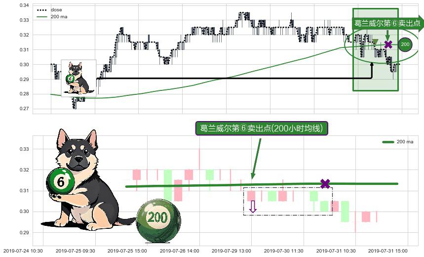 ⚀ 2019-07-29 13:00:00-小时显现 葛兰威尔均线 200小时均线 第⑥卖出点 走势反转见顶信号,后市看跌,卖出信号