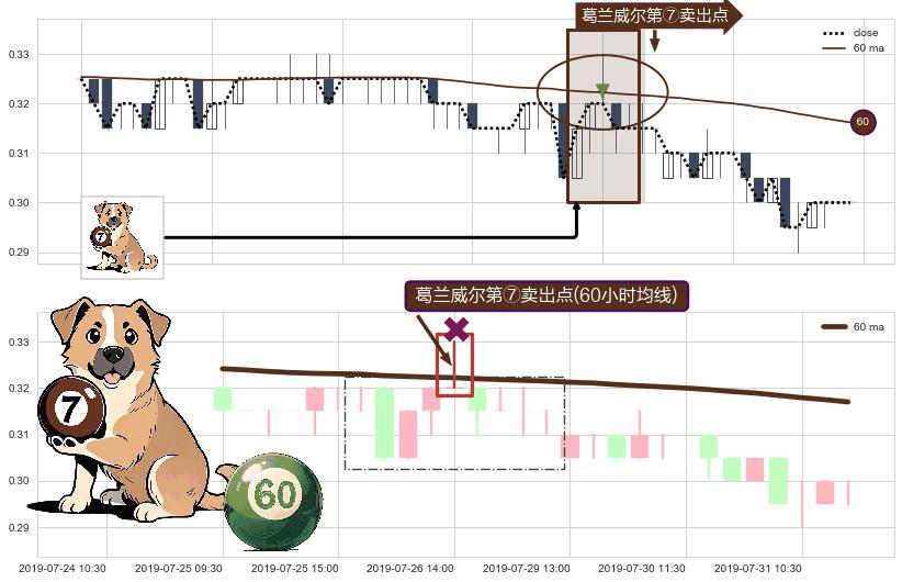 ⚀ 2019-07-26 14:00:00-小时显现 葛兰威尔均线 60小时均线 第⑦卖出点 下降趋势的中继信号,后市看跌,卖出信号