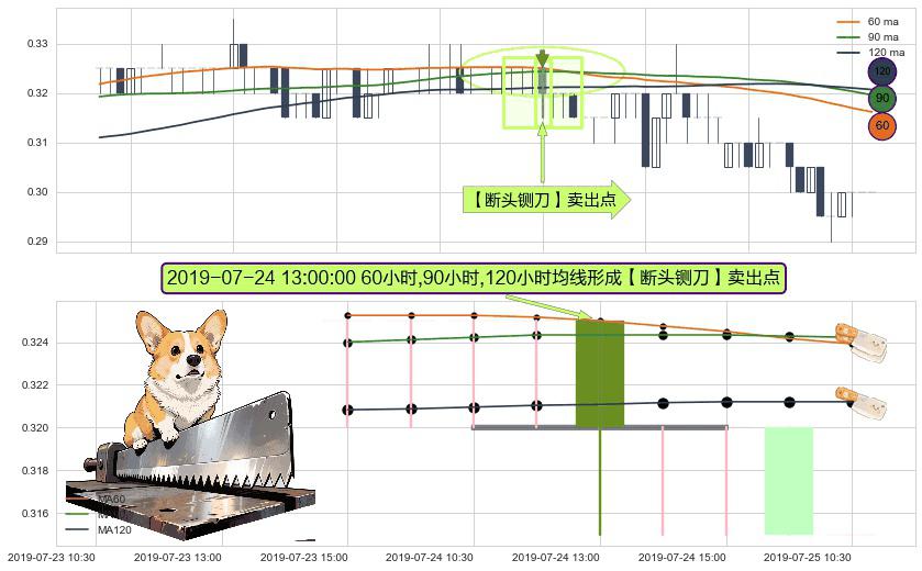 ⚀ 2019-07-24 13:00:00小时显现 60小时-90小时-120小时均线 【断头铡刀】卖出点 看空信号,后市看跌,卖出