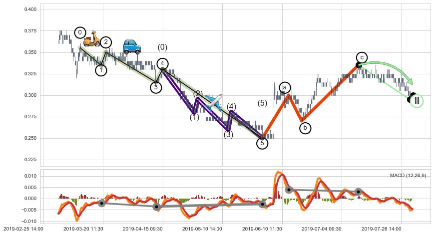 ➣ a,c调整浪MACD, RSI, KDJ走势都【未出现】背离,abc走势延续, 5浪反转概率增强