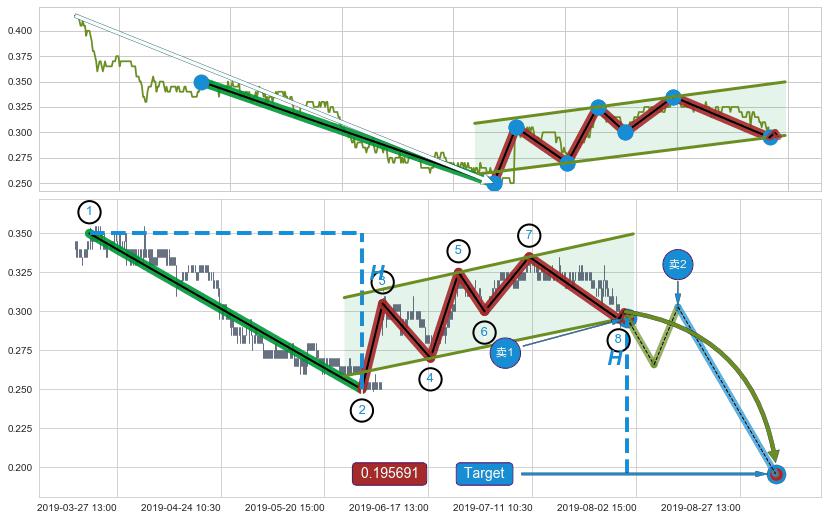 ➣ 最小中继整理跌幅→𝐇: 0.1000000 (𝐇旗杆的长度:旗杆起点→顶点)