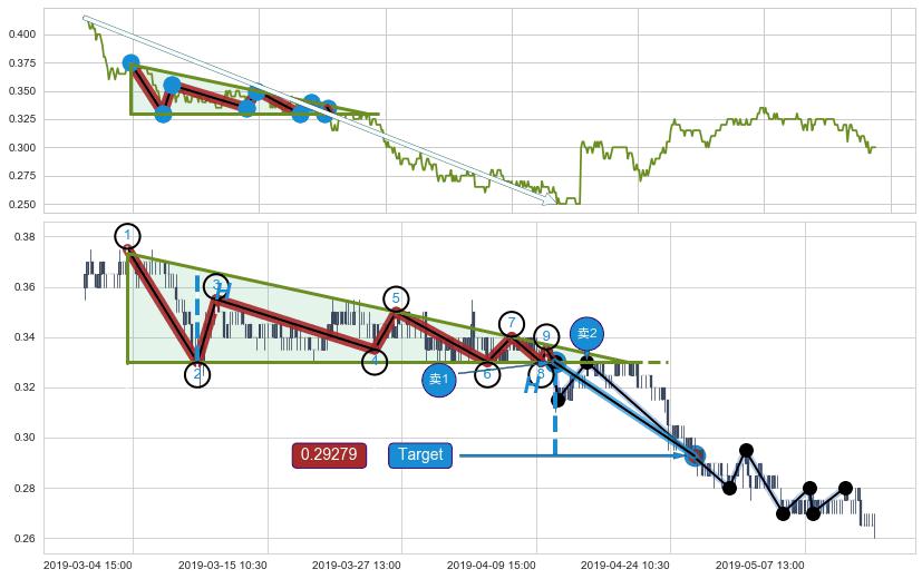 ➣ D点拟合预测价格0.38399,距离最后交易收盘价格0.30000相差 +28.00%