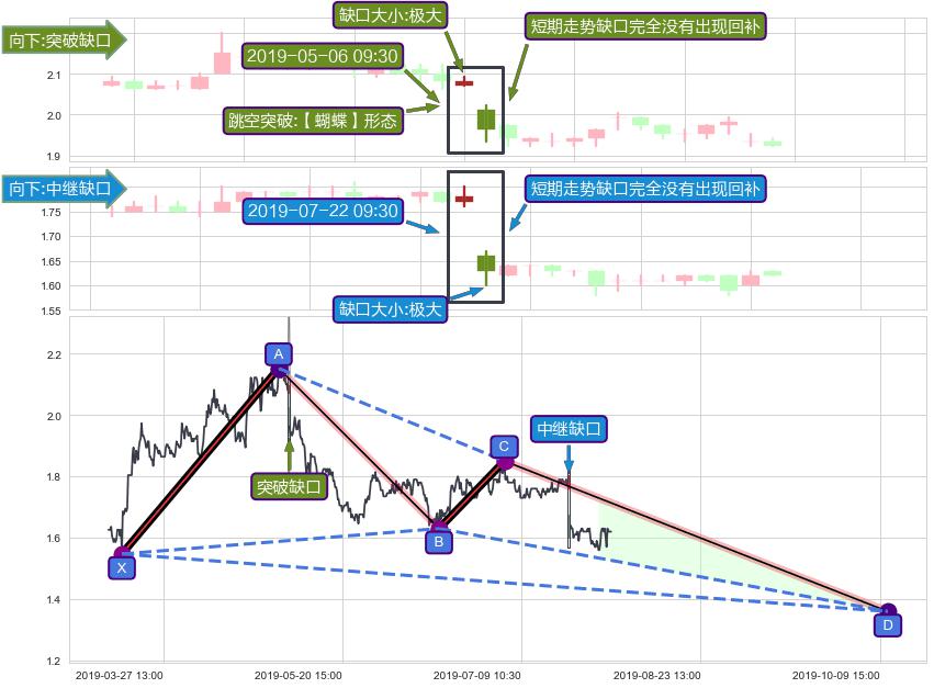 ➢ 【蝴蝶】形态 🔜 中继缺口 🔜 突破缺口 综合量化分数:40.07 【偏空】