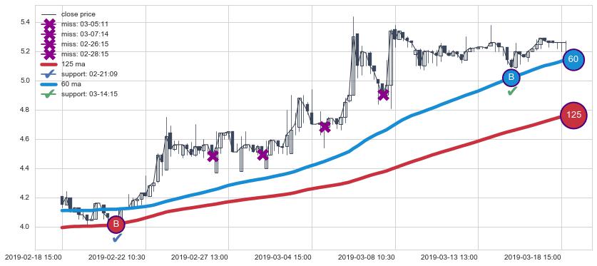 上涨趋势02-18 15:00-03-19 09:30,均线60, 125确认关键支撑2处