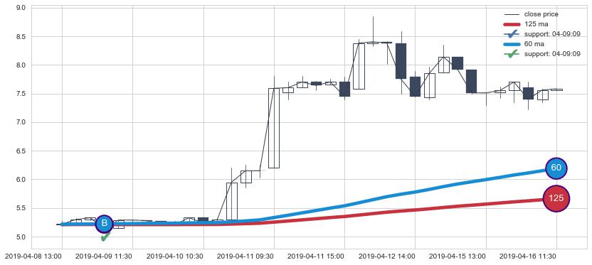 上涨趋势04-08 13:00-04-16 11:30,均线60, 125确认关键支撑1处