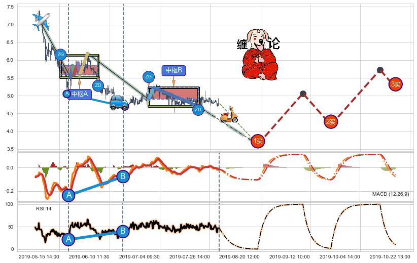 ➣ 【未完成】缠论 起点:05-06:10, 完成第1中枢A,完成第2中枢B,到达07-31:15