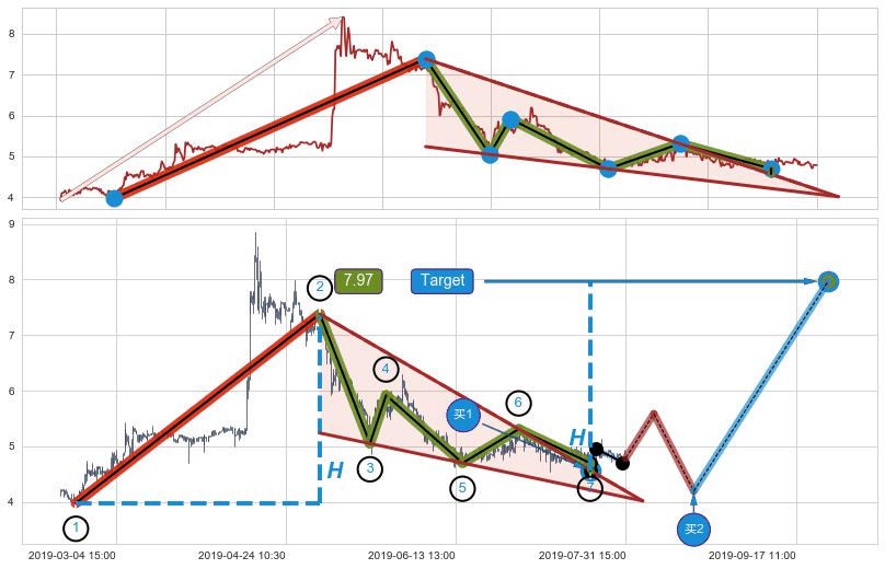 ➣ 最小中继整理涨幅→𝐇: 3.500 (𝐇旗杆的长度:旗杆起点→顶点)