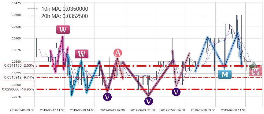 ♘ 支撑价格位0.0341135,可信任强度96.87%,距离最后交易2019-07-31 15:00形成的收盘价格0.0350000相差 -2.53%