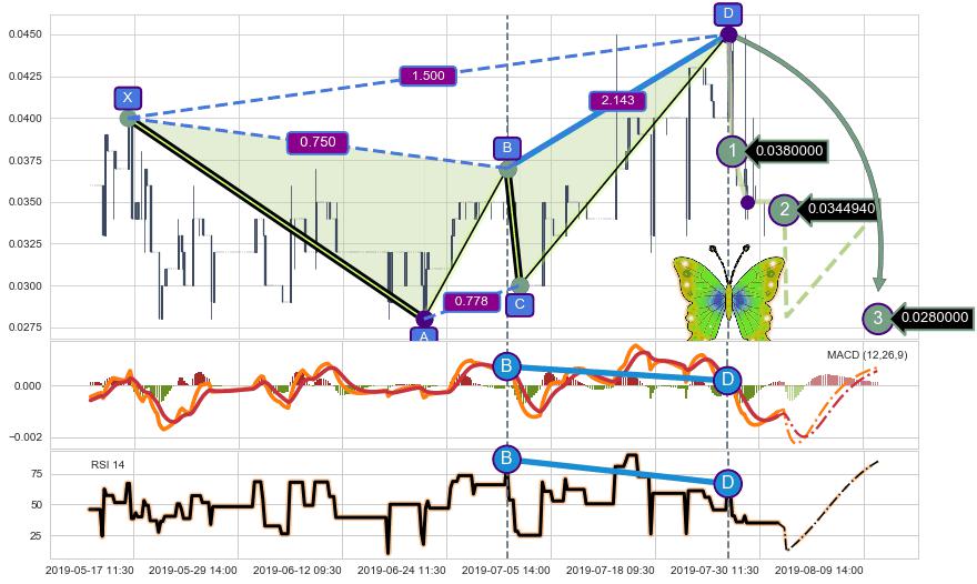 ➣ 已完成【蝴蝶】形态起点X: 05-16:15, 终点D: 07-25:15, 共289交易小时