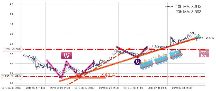 ♘ 支撑价格位3.286,可信任强度82.80%,距离最后交易2019-07-31 15:00形成的收盘价格3.600相差 -8.73%