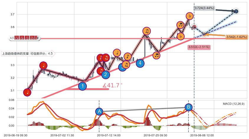 ➢ 预测:2019-08-02 14:00,【小幅回撤】稳定目前上涨趋势的前提下,预测价格:3.542