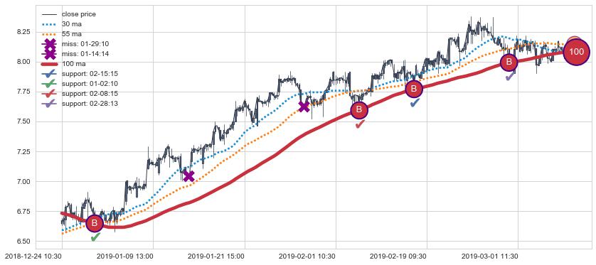 上涨趋势12-24 10:30-03-07 14:00,均线100确认关键支撑4处