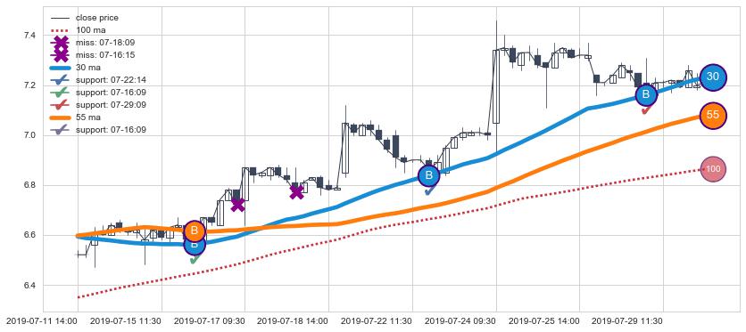 上涨趋势07-11 14:00-07-30 10:30,均线30, 55确认关键支撑3处