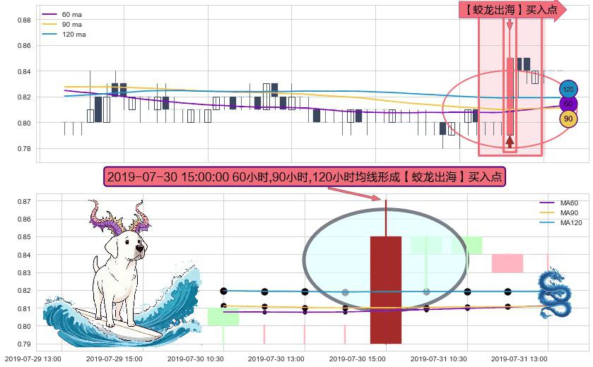 ⚀ 2019-07-30 15:00:00小时显现 60小时-90小时-120小时均线 【蛟龙出海】买入点 看多信号,后市看涨,买入