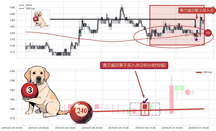 ⚀ 2019-07-30 09:30:00-小时显现 葛兰威尔均线 240小时均线 第③买入点 上升趋势的中继信号,后市看涨,买进信号